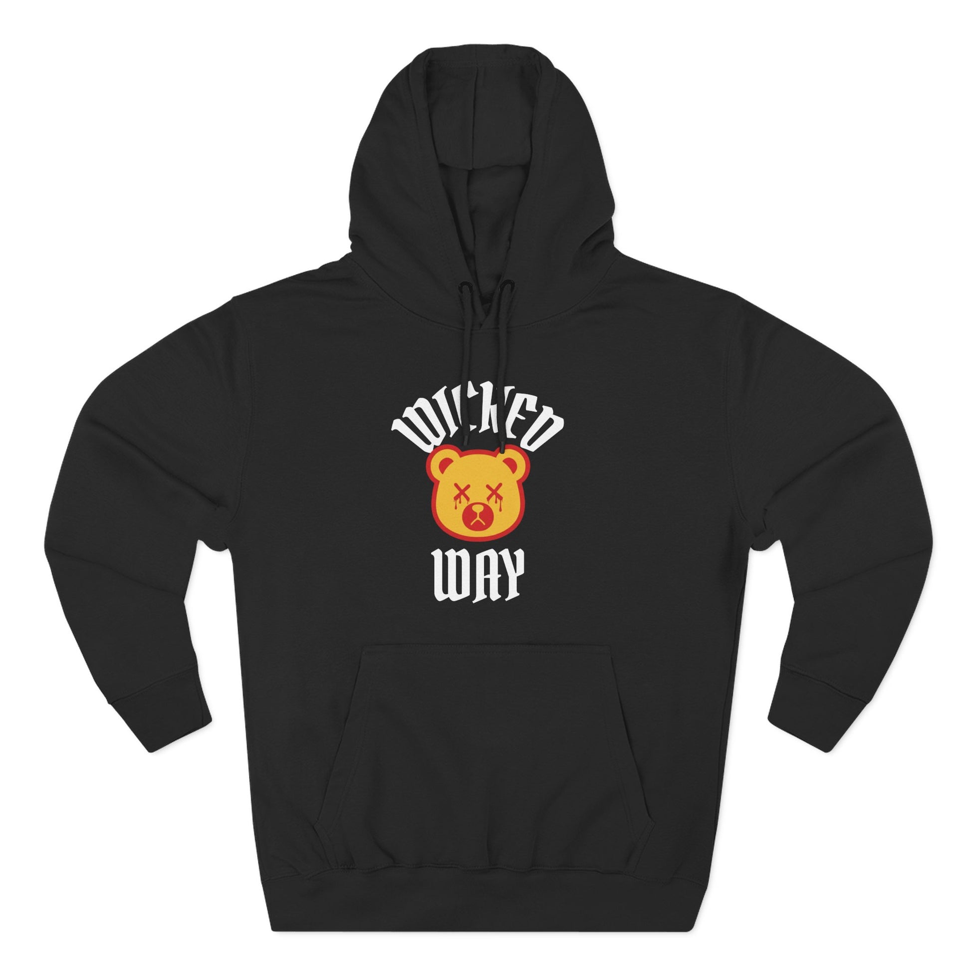 Black "Wicked Way" Deady Bear White, Red, & Yellow Fleece Hoodie