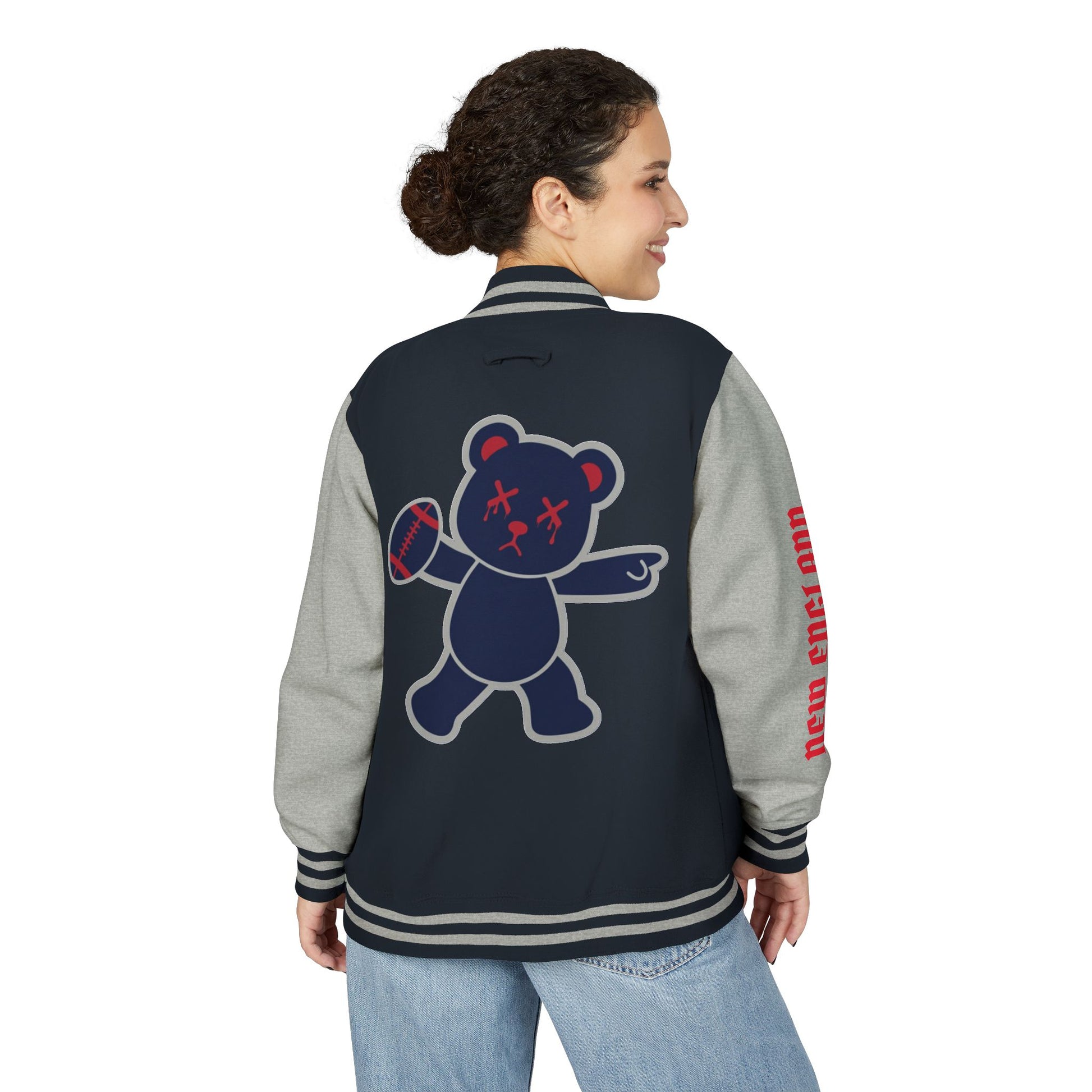 Navy Blue & Grey "Wicked Way" New England Deady Bear Football Heavyweight Letterman Jacket